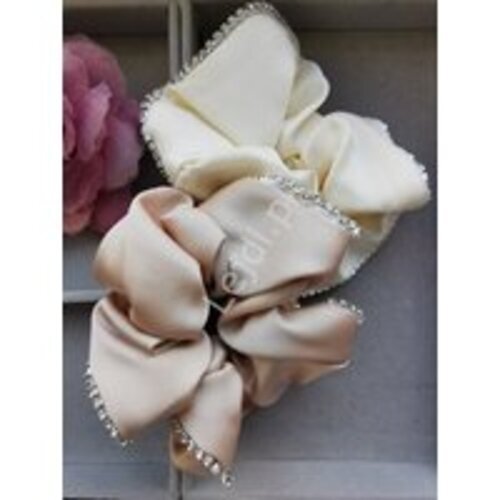 Gumka do włosów z kamieniem spinki z kwiatami do włosów z duża kokardą beżowa