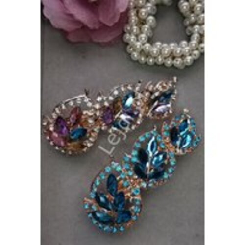 Kryształkowa spinka spinka do wlosow ozdoba do włosów listki turkusowa