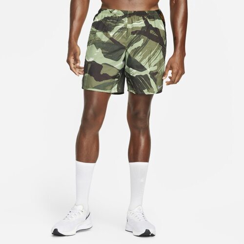 Męskie spodenki do biegania z wszytą bielizną i ze wzorem spodenki sportowe męskie moro Nike Challenger 18 cm - Zieleń