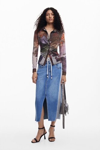 Hybrydowa spódnica midi z dżinsu