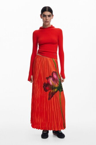 Twinset spódnica kolor pomarańczowy midi rozkloszowana
