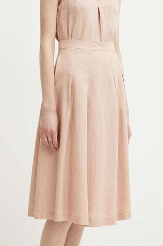 United Colors of Benetton spódnica lniana kolor różowy midi rozkloszowana