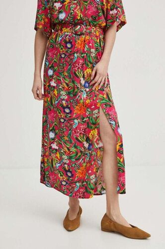 Medicine spódnica z domieszką lnu kolor różowy maxi rozkloszowana