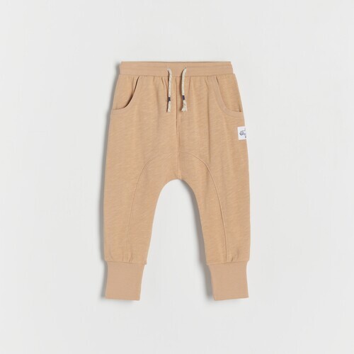 Reserved - Spodnie dresowe z naszywką spodnie joggery dla chłopca - Beżowy