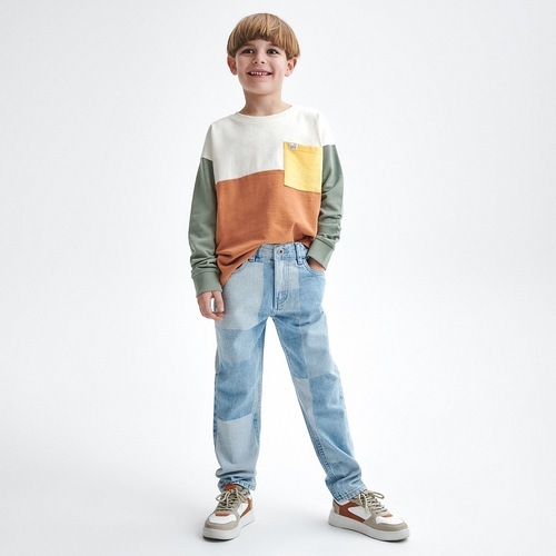 Reserved - spodnie dla chłopca 122 Jeansy regular patchwork - Niebieski