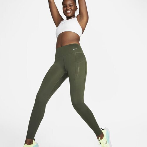 Damskie legginsy o pełnej długości ze średnim stanem i kieszeniami zapewniające sztywne wsparcie Nike Go - Brązowy