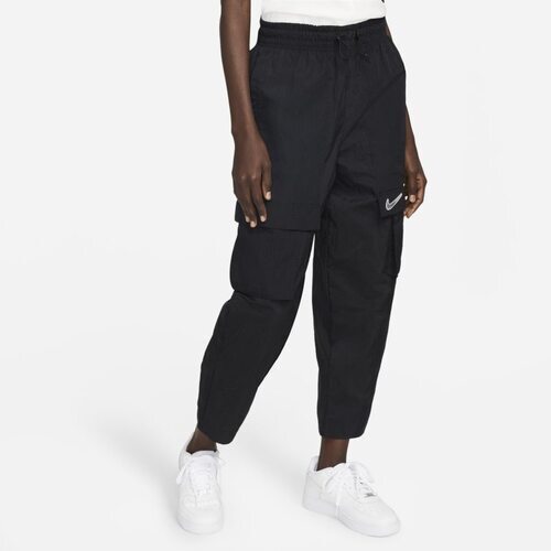 Damskie spodnie z tkaniny z wysokim stanem o kroju podkreślającym kształt ciała Nike Sportswear Essential - Czerń