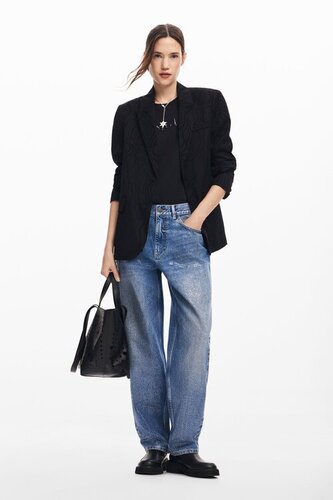 Spodnie dżinsowe balloon z podwójną wstawką w pasie