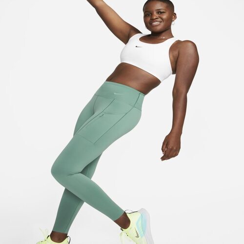 Damskie legginsy o pełnej długości ze średnim stanem i kieszeniami zapewniające sztywne wsparcie Nike Go - Zieleń