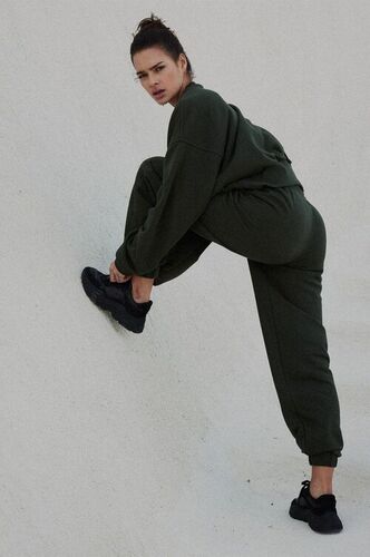 MUUV. spodnie dresowe z wysokim stanem MILD COTTON damskie kolor zielony gładkie