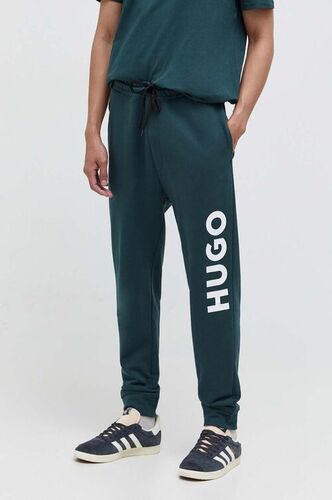 HUGO spodnie dresowe bawełniane kolor zielony z nadrukiem