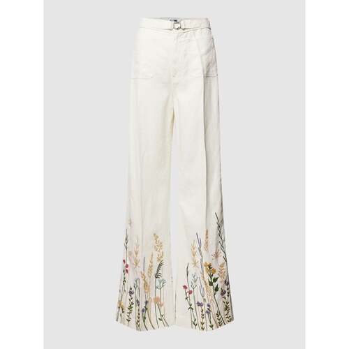Spodnie lniane o kroju relaxed fit z wpuszczanymi kieszeniami model ‘Farina’ biale spodnie na lato