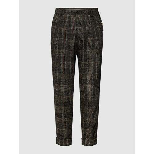 Chinosy ze wzorem w szkocką spodnie brązowe męskie kratę model ‘Obey’