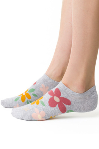 Steven 021 wzorowane stopki Skarpety stopki, melanż szary/kwiaty 062