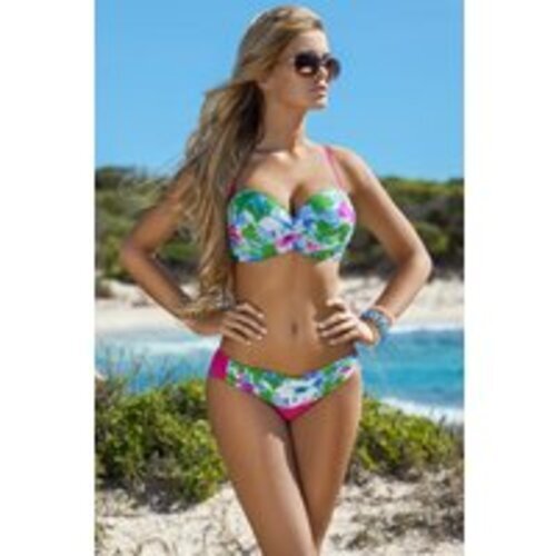 Ewlon Ibiza Kostium strój kąpielowy biały dwuczęściowy kąpielowy dwuczęściowy, zielono-różowy