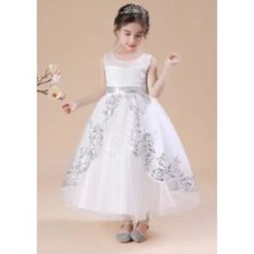 Biała sukienka sukienki jesienne dla dziewczynek dla dziewczynki, komunijna sukienka z cekinami A11