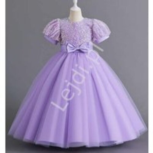 Jasno różowa sukienki dla dziewczynek tanie tiulowa sukienka wieczorowa dla dziewczynki z cekinami i kokardą 170
