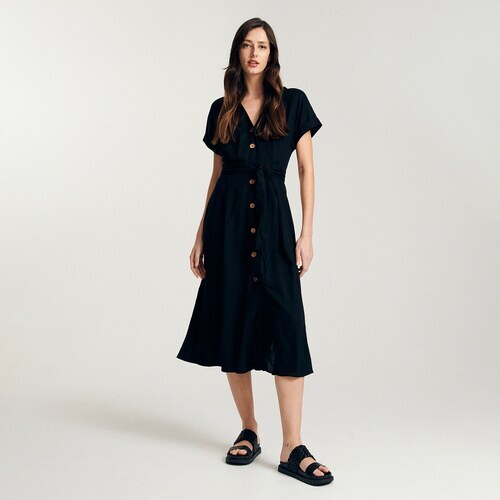 Jeśli sukienka koktajlowa mini to dla ciebie zbyt krótka propozycja, polecamy rzucić okiem w kierunku wersji midi. Tego rodzaju kreacje są szalenie eleganckie i wcale nie mniej kobiece od swoich „mniejszych sióstr”. Na jakie okazje warto je wybrać? Tutaj również wymienimy wesele, wieczorne przyjęcie, a nawet formalny bankiet. Jakie modele w tym przypadku okażą się najbardziej pożądane? Sukienka koronka, a także projekt w kształcie litery A, stylizowany na tak zwany new look Diora (w talii koniecznie zapnij szeroki pas). Czy jakiś jeszcze fason godny jest uwagi? Zdecydowanie tak. Mowa tutaj o ołówkowej sukience z głębokim dekoltem na przodzie lub tyle. A jakie kolory i wzory w tym przypadku wchodzą w grę? Te same, który wymieniliśmy przy okazji krótkiej sukienki. Przy wersji midi możesz jednak wziąć pod uwagę również butelkową zieleń, czerwień czy granat. Wówczas takiej projekty sprawdzą się też jesienną porą. A z czym je łączyć? Zdecydowanie ze szpilkami lub sandałami na obcasie. Jako okrycie wierzchnie możesz użyć maxi płaszcza lub marynarki oversize.