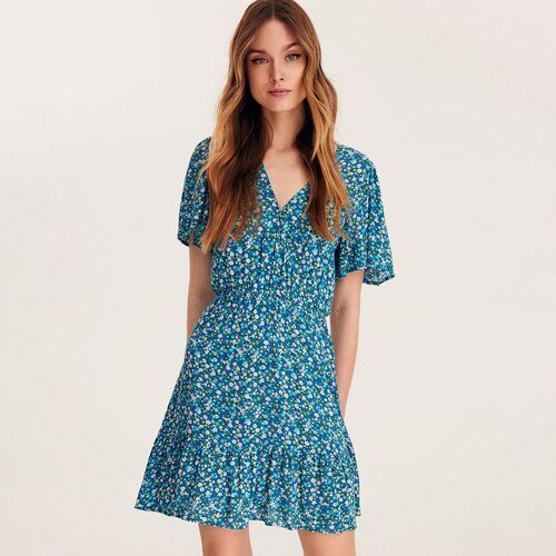 Reserved - Sukienka z falbanami - Niebieski