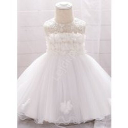 Biała sukienka na komunię z tiulowym obfitym dołem 022