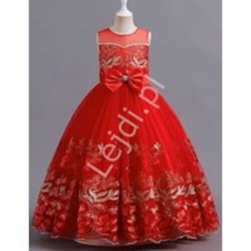 Wieczorowa długa czerwona sukienka dla dziewczynki na bal, na wesele