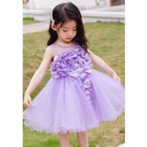 Fioletowa sukienka dla dziewczynki z kwiatami 3D, 1932