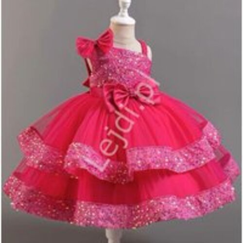 Brudno różowa sukienka z cekinami i tiulem dla dziewczynki z dłuższym tyłem 183