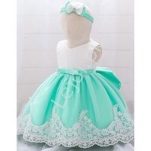 Miętowo biała sukienka dla dziewczynki - komplet z opaską 911