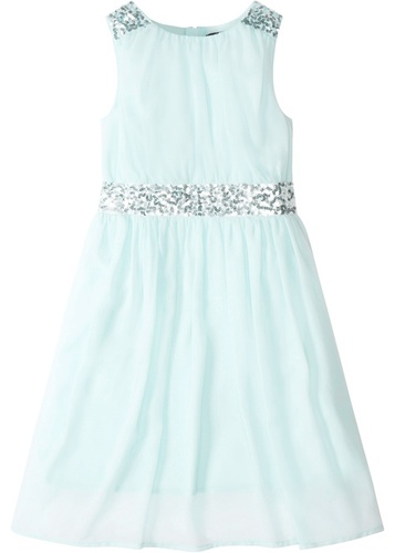 Krótka błękitna sukienka wieczorowa dla dziewczynki z cekinami i kwiatkami 153