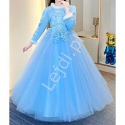 Błękitna sukienka dla dziewczynki na wesele, na bal, elegancka sukienka dziecięca CK683