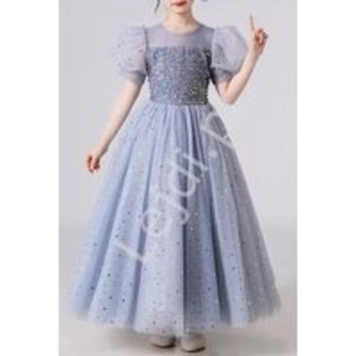 Długa szara sukienka wieczorowa dla dziewczynki z cekinami i gwiazdkami 8903