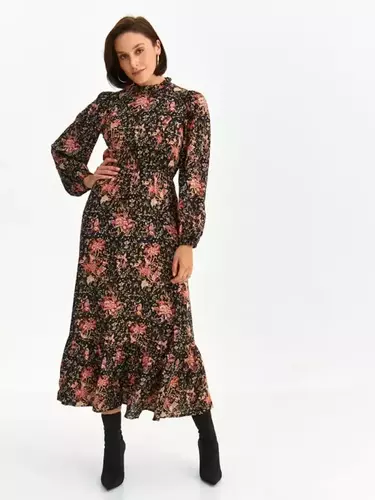 Sukienka midi z sukienki czarne kwiatowym wzorem na całej powierzchni