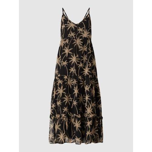 Sukienka z sukienka czarna tania szyfonu z nadrukami w palmy model ‘Siciliy’