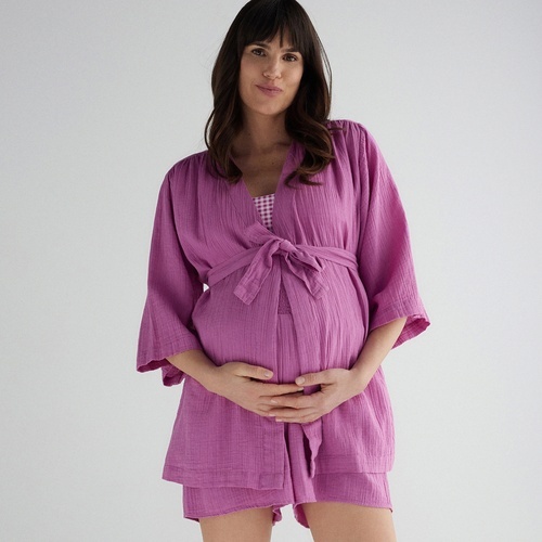 Reserved - Bawełniane kimono - rozowe sukienki Różowy