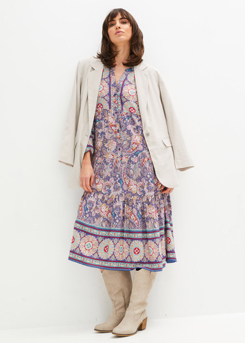 Sukienka tunikowa oliwkowa sukienka na wesele z nadrukiem