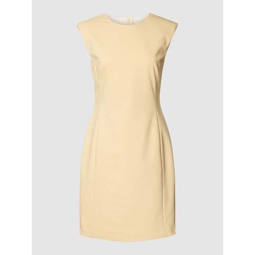 Sukienka o długości do kolan z okrągłym żółta elegancka sukienka dekoltem