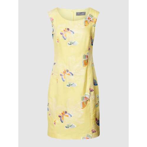 Sukienka o długości do kolan z zolte sukienki okrągłym dekoltem