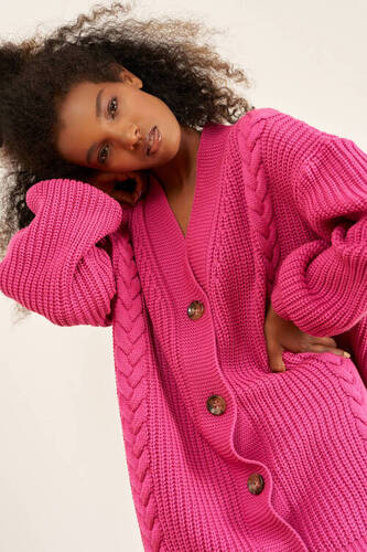 Sweter kardigan oversize zapinany na duże guziki różowy
