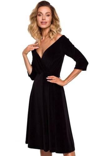 Rozkloszowana kopertowa sukienka welurowa czarna
