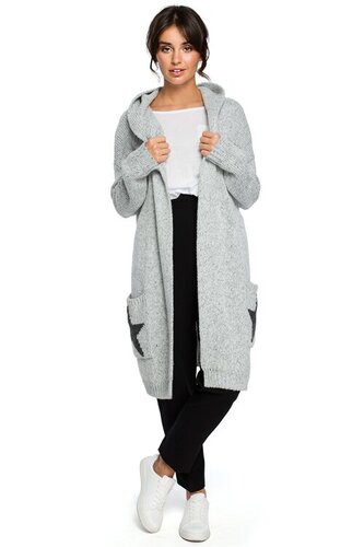 Dłuższy sweter kardigan oversize z obszernym kapturem