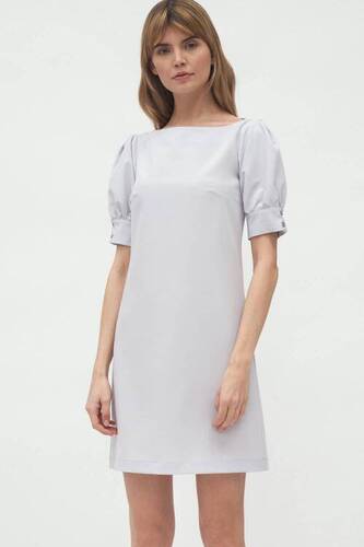 Szara koktajlowa sukienka mini z bufiastymi rękawami