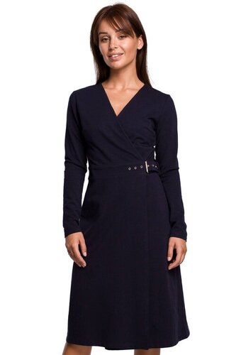 Kopertowa sukienka z ciepłej dzianiny z paskiem