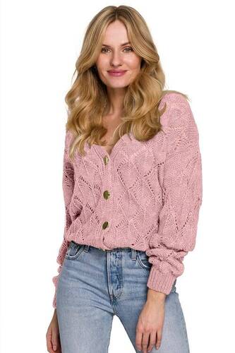 Ażurowy kardigan zapinany na swetry damskie przez głowe złote guziki