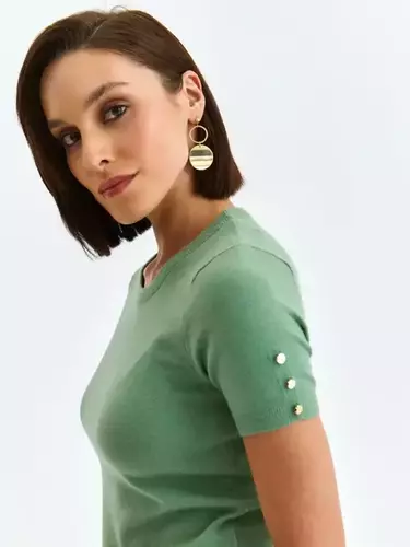Sweter z dzianiny z ozdobną listwą guzikową model ‘DAUMANIK’ sweter damski dopasowany