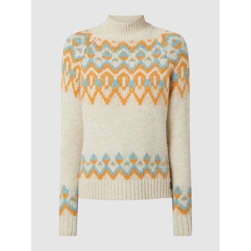 Sweter z norweskim sweter kremowy damski wzorem ze stójką