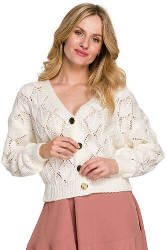 Ażurowy kardigan sweter damski cienki zapinany na złote guziki