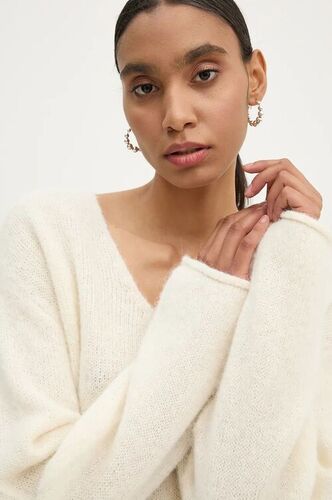 Kolejnym pożądanym kolorem jest słodka wanilia. Wybieramy te, które wyróżniają się wyrazistym splotem lub prążkowane. Najlepiej w tej roli sprawdzi się sweter z dekoltem w serek lub półgolf. Odcień waniliowy bardzo dobrze komponuje się z innymi barwami ziemi, np. czerwień czy czerń. Jeśli lubisz wyraziste neony, kup sweter w kolorze różowym, seledynowym lub żółtym.