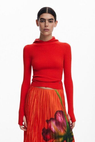 Medicine sweter damski kolor czerwony lekki z półgolfem