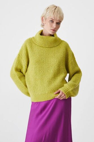 Medicine sweter z domieszką wełny damski kolor zielony ciepły