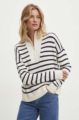 Medicine sweter damski kolor beżowy lekki z półgolfem